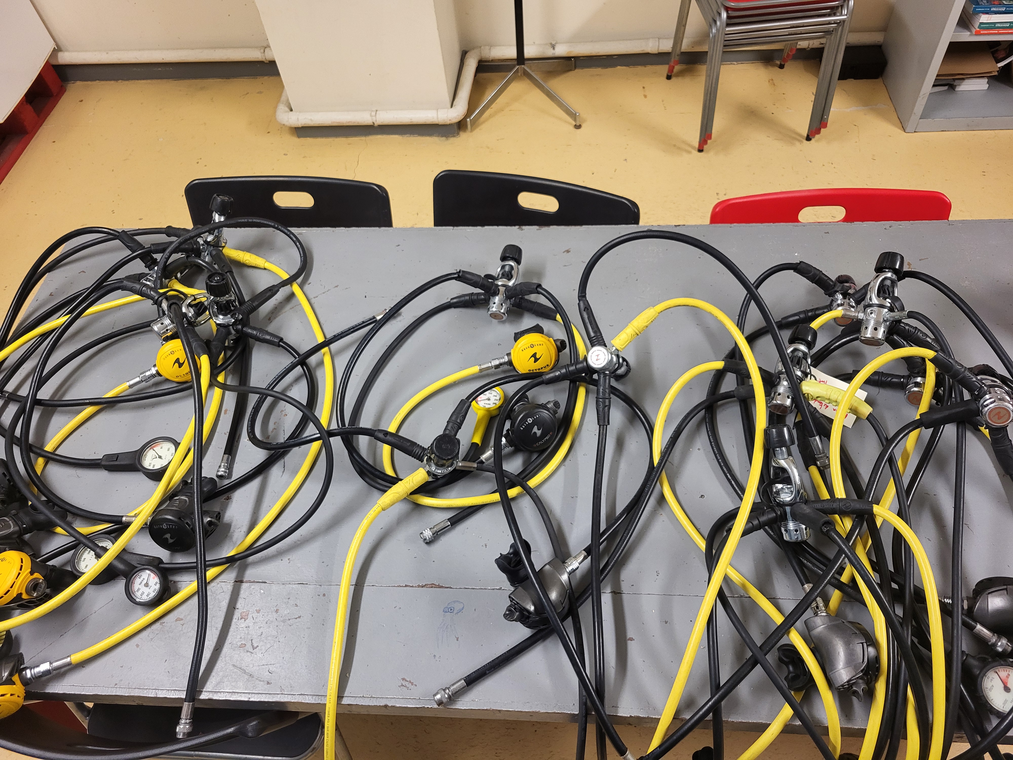 Le club propose Ă la vente des dĂ©tendeurs complets de marque Aqualung CALYPSO, Ă©quipĂ©s dâun Ă©trier.