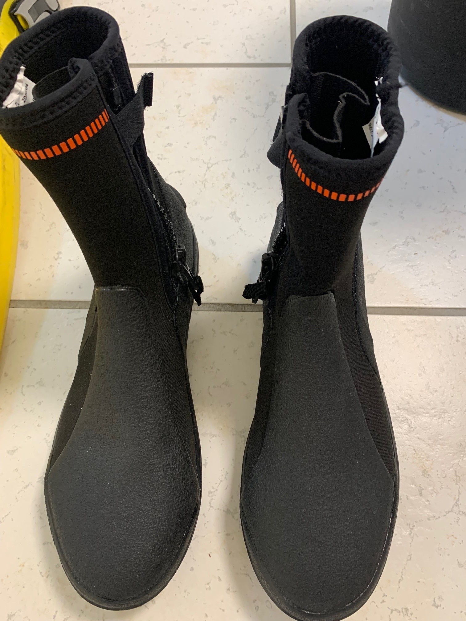 les chaussons "special eau froide" sont neufs, portés une fois.( decathlon )